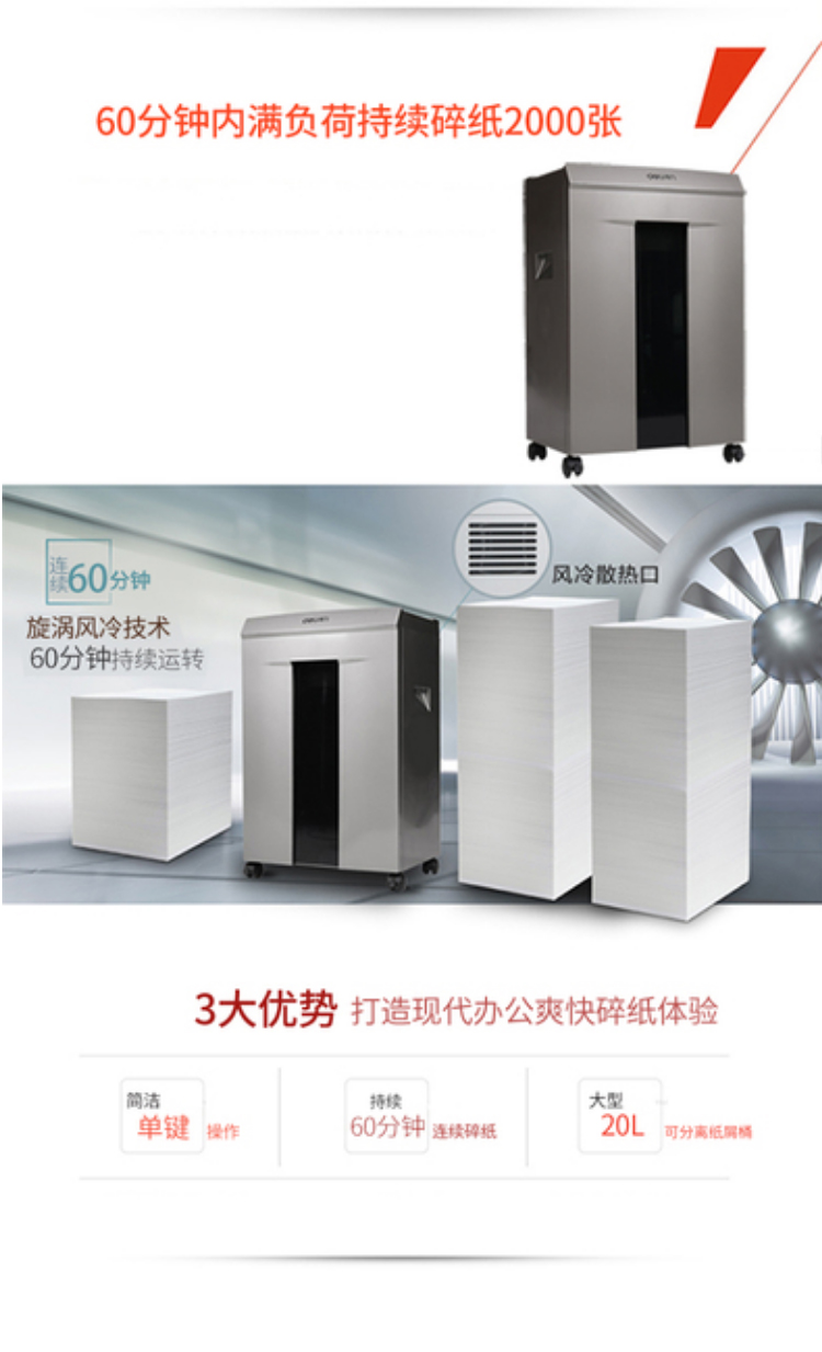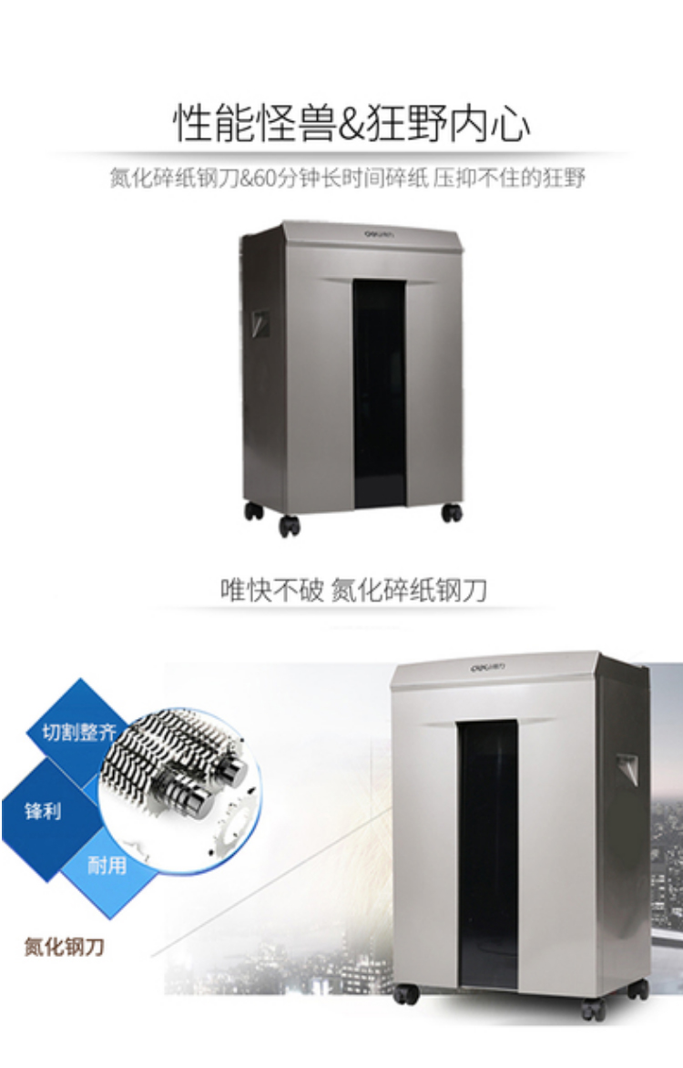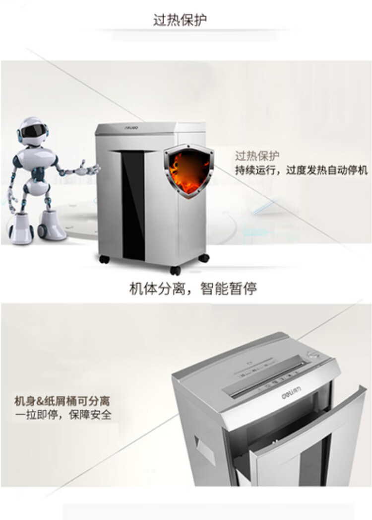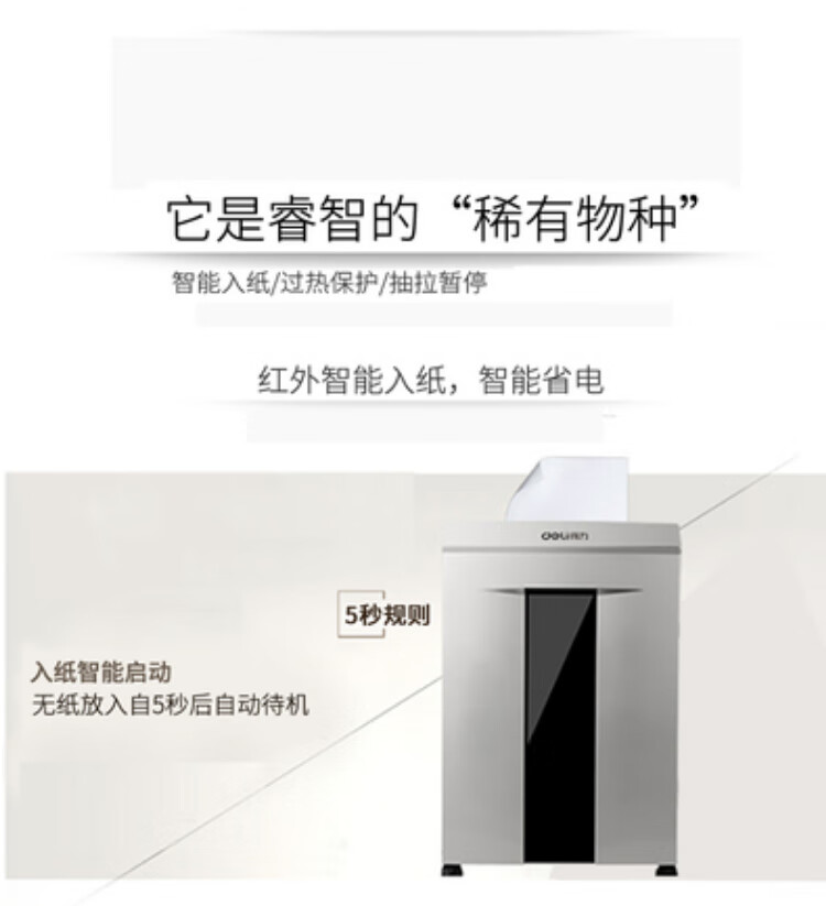 得力(deli) 5級(jí)保密辦公商用碎紙機(jī)(單次8張 20L 持續(xù)10分鐘 可碎卡碎光盤(pán))33043