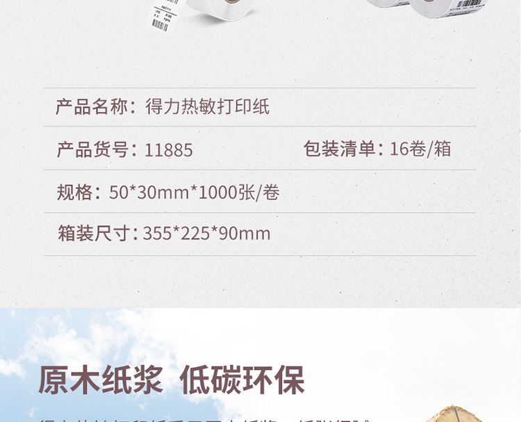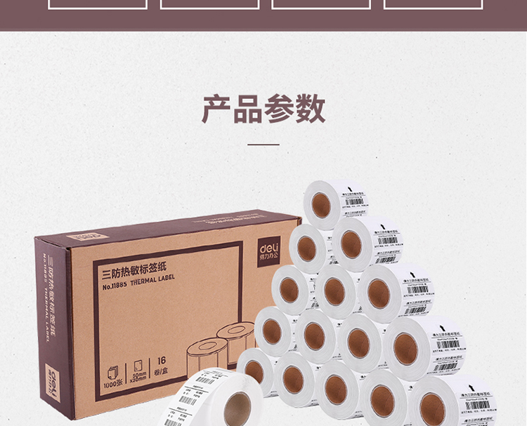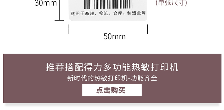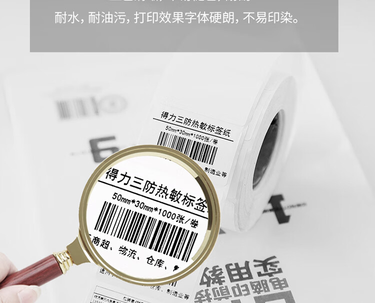得力(deli)50*30mm三防熱敏標簽打印紙 不干膠條碼打印紙(16卷裝 1000張/卷)11885 自營